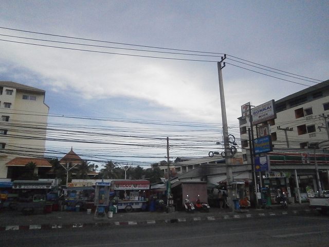 タッパヤー通りをひたすら走り、峠を越えて、左手にスワンナプーム行きのバス乗り場がある(右手はイタリアン料理のPANPAN)ので、そこを越えたあたりで下車。