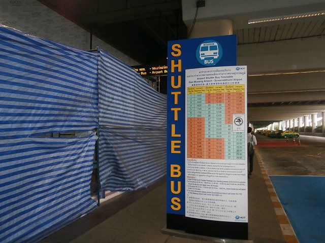 2014年8月追記。徐々に規則が厳しくなってきているようで、スワンナプームから乗るチケットがないと乗れない可能性がある。5月時点では、スワンナプームから乗る飛行機のチケットがなくても、問題なくシャトルバスに乗れたが、ころころと規則がかわるので要注意。)