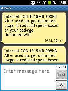 最後にSMSが送られてきて、データ残量がわかる仕組みだ。