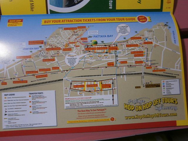 メインルートは、セントラルを出発して、丘の上にあるビッグブッダ、パタヤパーク、水族館、水上マーケットなどを巡回。これが一時間半ごとに運行されている。乗ったり降りたり自由にできるということだろう。