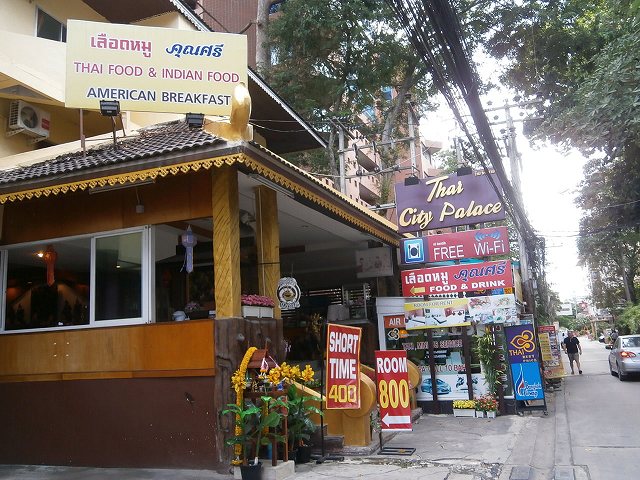ソイ4のビーチ寄りの立地。建物は少し老朽化。朝食付きで1泊1300バーツほど。