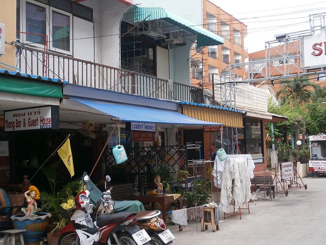 この一角にあるアパートに住んでいるバービア嬢の話では、賃料は1ヶ月3000バーツ程度とのこと。もちろんファンのみで、エアコンは無し。1日100バーツと考えるとかなり安い。