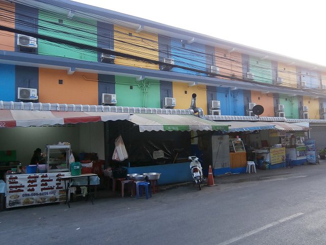 サバイルームの軒下にローカル食堂が何軒か並んでいる。一皿40バーツほどで食事ができるので安上がりだ。ビッグCで働く人たちがよく訪れている。